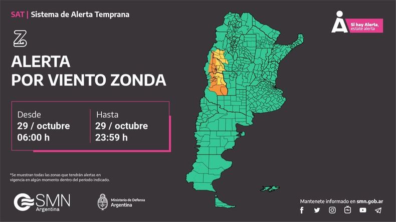 Localidades bajo alerta por viento Zonda