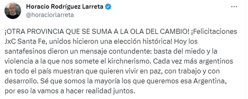 «¡Otra provincia que se suma a la ola del cambio!», escribió el jefe de gobierno porteño en su cuenta de Twitter.