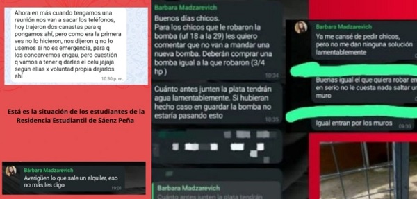 Desde hace un tiempo largo los estudiantes que viven en las residencias la vienen “denunciando” en grupos de WhatsApp, Facebook, Instagram, persecución y falta de respuestas concretas a los problemas. También llegó a sugerirse la existencia de cierta orden para desalojar a varios estudiantes de bajos recursos, y ¿acomodar militantes?.