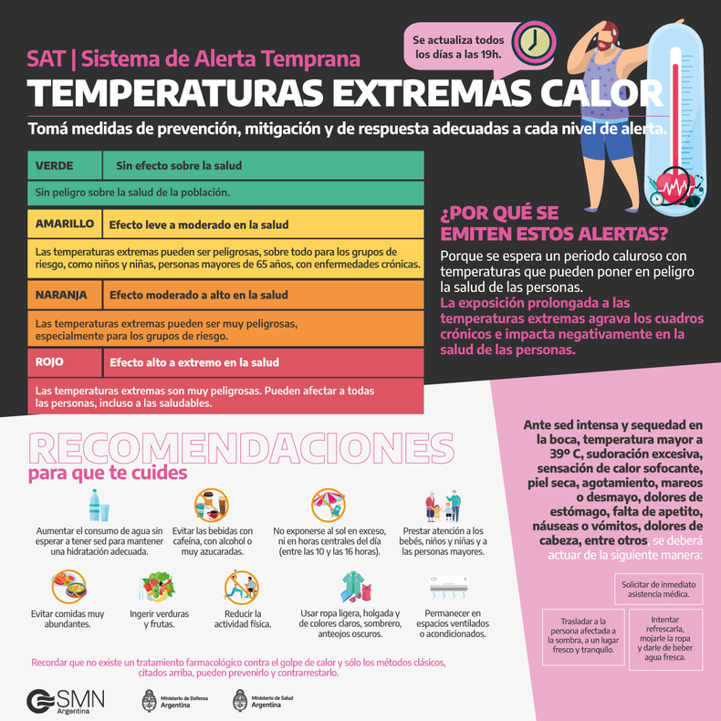 Aunque manifestaron que esperan que «las altas temperaturas llegaría a su fin entre el sábado 11 y el domingo 12 en la franja central del país a medida que un frente frío avance desde el sur. Mientras que en el norte del país las altas temperaturas podrían persistir hasta comienzos de la próxima semana«.